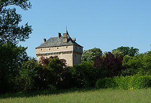 Très beau château restauré au XVème siècle avec tour et mâchicoulis ; cette ancienne grange monastique dépendant de l’abbaye Cistercienne de Loc-Dieu mérite la photo avec son parc, ses pelouses entretenues à l’anglaise et ses étangs.
